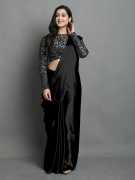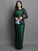 Women's Beautiful Soft Silk Blend Solid Plain indian Wedding Party Wear Light Weight Saree With Designer Blouse Piece Sari