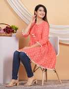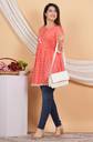 Glowworld Women Fit and Flare Pink, White Knee Length Dress