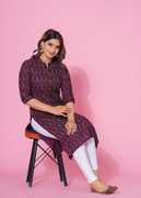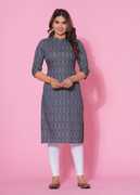 Glowworld Women Striped Straight Kurta (Grey)