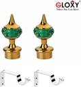 GLOXY Gold, Green Curtain Knobs, Curtain Hooks, Rod Rail Bracket Metal (Pack of 6)