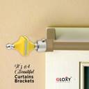 GLOXY Silver, Yellow Rod Rail Bracket, Curtain Knobs, Curtain Hooks, Curtain Rods Metal (Pack of 8)