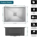 GLOXY Stainless Steel 304, Handmade Single Bowl Kitchen Sink With Basket SS 304 GRADE 24"x18"x10" SINGLE BOWL HANDMADE Kitchen Sink, Satin Finish Vessel Sink (Silver)