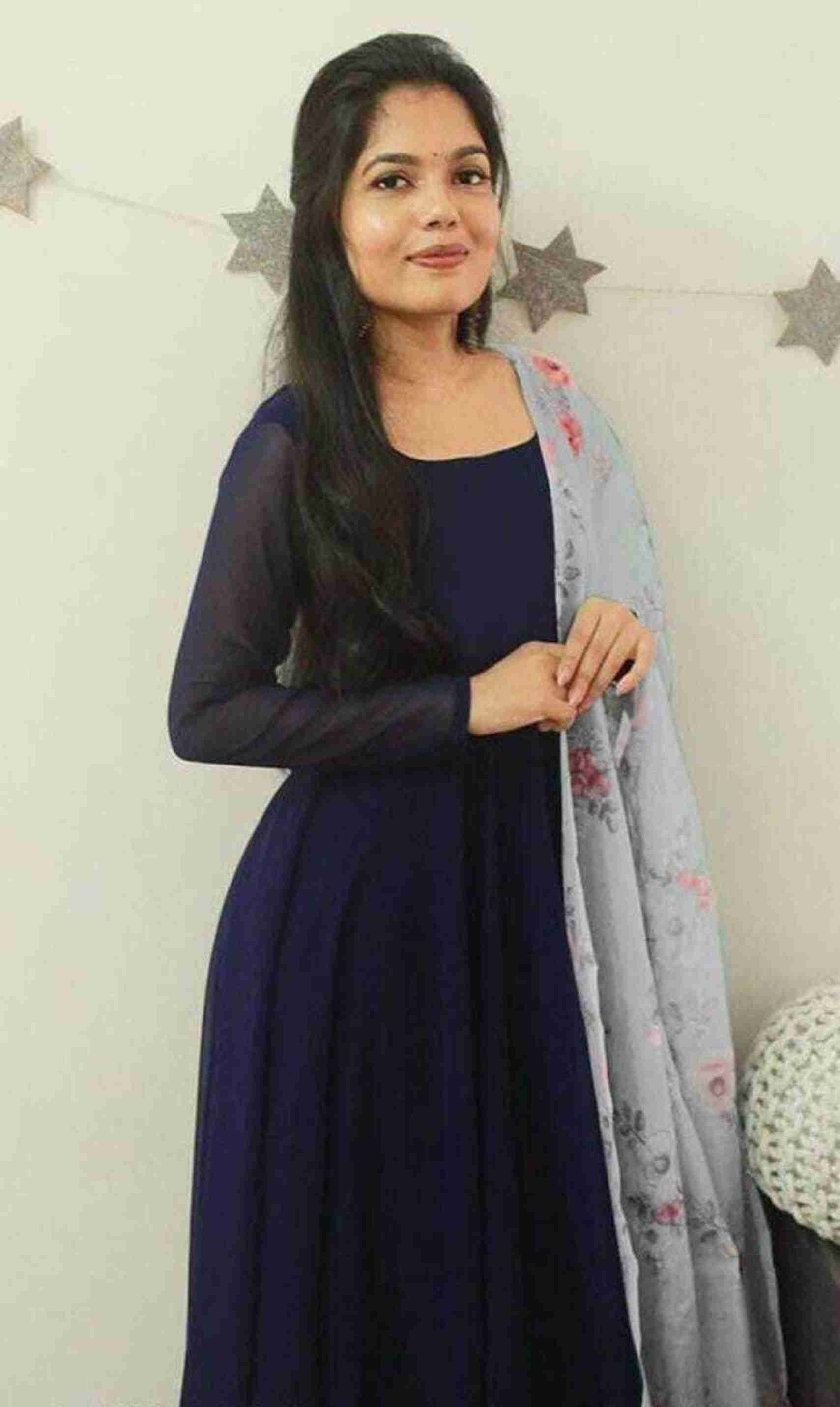 Women Solid Georgette Anarkali Kurta With Attached Dupatta (Dark Blue)