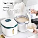?1. High-Quality--BPA-Free material bottle body, high permeability, you don't need to worry about the safety of the material. ?2. Our grain container are good sealed make your food dry and fresh. ?3. Our food storage box is design with simple shape and removable lid, which make it easy to clean and dry. ?4.Our food storage container can automatically quantify rice and produce whole grains. ?5. The round button can be pressed with one key to intelligently quantify the meter, food can be poured directly out of the mouth, reducing the steps to open the lid to make life more convenient. FEATURES : ? Airtight: Keep your food dry and fresh for a long time. ? Made of high-quality Durable material. ? Space Saving Design Free up space in the Pantry. ? Equipped with a scale and drain function container. ? 10KG large capacity can meet most Family needs. ? Visual scale window make sure that you will real time observe reserves, can add rice to go in at any time. ? Simply push a button to access an amount of rice. ? Wide Application: Usable for wide range of grains, from rice, to seeds and pasta or cereals.