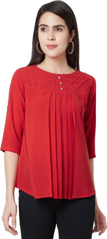 This Stylish top is a pure stunner and makes an everlasting statement whenever you wear it. It gives you flawless shape and flows with the body all day long. What gives this solid top a distinct look is the unique moti work on the front yoke. Don't think twice before getting this classic style.