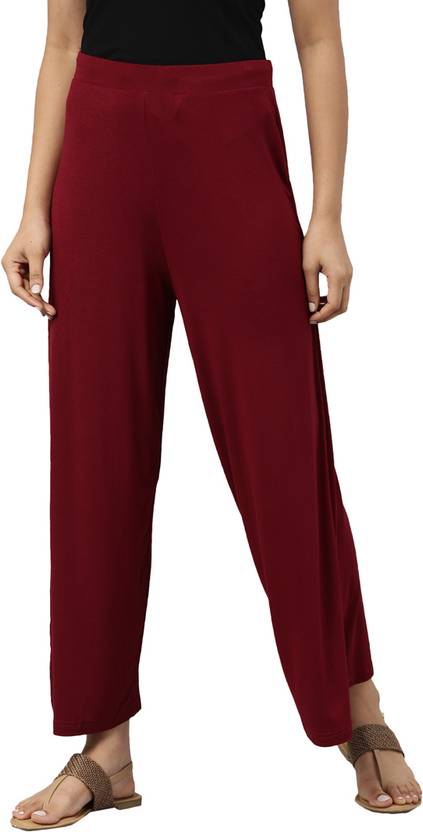 Women Relaxed Maroon Viscose Rayon Trousers