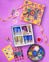 • Imli Popz (4 pcs), Real Aam Popz (4 pcs), Kaccha Aam Popz (4 pcs), Badam Barfi (4Pcs),Kaju Kishmish Barfi (4 Pcs), Pista Barfi (4 Pcs), Masala Jamun Popz (3 Pcs), Rakhi (1 Pc), Rakhi Plate (1 Pc)