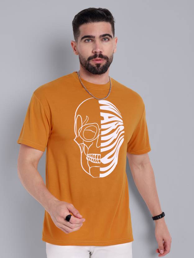 Go DevilΒ Men Printed Round Neck Cotton Blend Yellow T-Shirt