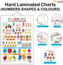 The Numbers, Shapes & Colors chart introduces children to basic concepts such as numbers, shapes, and colours interactively and engagingly. It features vibrant illustrations of numbers, various shapes, and a wide range of colours, encouraging children to explore and identify these fundamental elements.