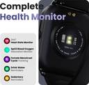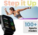 Boasting a real-time 24x7 heart rate monitor, blood pressure monitor, and SpO2 blood oxygen saturation monitor, along with a female menstrual cycle tracker, calorie count tracker, sleep monitor, drink water reminder, and sedentary reminder, this smartwatch lets you keep important health parameters in check.