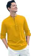 Elevate your style with the GODHEART Men Pure Cotton Slim Fit Full Sleeve Short Kurta. Designed for men who value comfort and sophistication, this elegant beige kurta combines modern tailoring with timeless charm. Perfect for casual outings, festivals, or celebrations, it is crafted to suit every occasion. Key Features: • Fabric & Material: Made from 100% pure cotton for breathable comfort and a super-soft feel. • Design: Solid beige color with a plain, minimalist look for versatile styling. • Fit & Closure: Slim fit with button closure for a tailored yet comfortable appearance. • Sleeve Style: Full roll-up sleeves for added flexibility and a trendy touch. • Collar & Hemline: Mandarin/Chinese collar paired with a curved hemline for a modern ethnic vibe. • Length: Short kurta style, perfect for pairing with both traditional and contemporary bottoms. How to Style This Short Kurta: 1. Casual Look: Pair with dark blue or black denim jeans and leather loafers for a laid-back yet polished appearance. 2. Traditional Ensemble: Combine with a pair of white or beige churidar for a festive or ethnic occasion. 3. Smart-Casual: Add chinos or straight-fit trousers, along with minimal accessories like a leather strap watch. 4. Layering Option: Layer it with a Nehru jacket or light ethnic vest for an added touch of sophistication. 5. Footwear: Pair with ethnic mojaris for a traditional look or sneakers for a modern casual outfit. Material & Care: • Material: Pure cotton for ultimate comfort and durability. • Care Instructions: Suitable for both hand and machine wash. Use mild detergents for longer fabric life and avoid direct sunlight for drying to maintain the color. Why Choose This Kurta? • Versatile styling for casual and festive occasions. • Made from breathable, lightweight cotton for all-day comfort. • Tailored slim fit for a polished and trendy look. With GODHEART’s Short Kurta, redefine your wardrobe with an effortlessly elegant style that merges tradition and modernity.