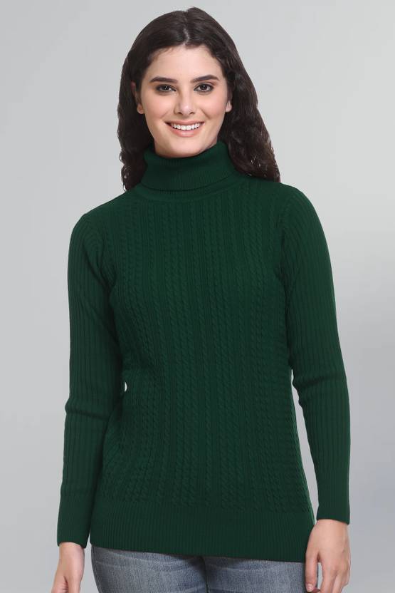 The Hign neck woollen sweater for women is made up with latest knitted technique which provide a smooth & fine knit design. We manufacture top-quality women's pullover to keep you warm. The yarn used is fully processed and composed of premium yarn which makes pullover thin & fine quality, comfortable and keep the body warm. The Regular fit full sleeves turtle neck woolen sweater for girls female is bio-washed and softener treated which makes the fabric very soft in touch and feel. The fabric knitting of this woman ladies Sweater does not peel easily and the colour does not fade easily. The Round turtleneck collar sweaters come in variety of colours that can be wear under the jacket, Coat, cardigan, jumper etc in high winter. The Cable design Solid girlish tneck sweater is available in extra large Plus sizes.