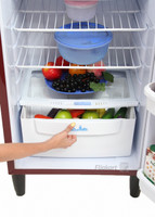 Equipped with a humidity controller, this fridge keeps vegetables fresh for long inside by controlling the humidity level.