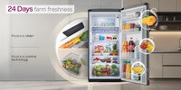 Leveraging advanced moisture control technology, this feature extends the freshness of your fruits and vegetables, keeping them farm-fresh for up to 24 days.