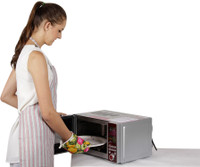 The Godrej microwave oven comes with 20 litres capacity, making it ideal for family of 4 members. It features a Teflon coated plate and a silicon base for quick heating of food when in microwave mode. The stainless steel cavity is highly reflective, hence it ensures faster cooking. It is also easy to clean the stainless steel interiors.