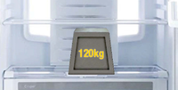 Each shelf in this fridge can hold up to 120 kg of contents.