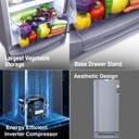 This refrigerator has an energy efficient inverter compressor that adjusts the cooling according to the refrigerator’s workings and is also quiet