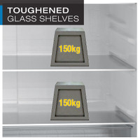 This refrigerator’s shelves are made of toughened glass and can hold up to 150 kg so that you can store heavy utensils also.