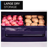Designed with a bottom drawer for storing vegetables which don't require refrigeration, such as onions, garlic, potatoes, and more, this refrigerator adds to the convenience of use.