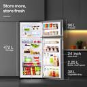 With a roomy 472 L capacity, including a 96 L freezer, this refrigerator is thoughtfully crafted for families. A wide 60.96 cm (24) shelf holds large trays with ease, while the 2.25 L bottle rack and a generous 38 L vegetable tray make everyday storage smooth and convenient.