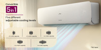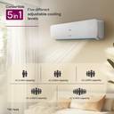 The 5-in-1 Convertible Mode is an innovative feature that provides five adjustable cooling levels, allowing you to optimise comfort and energy efficiency based on your specific needs. Whether you're dealing with varying room sizes, different weather conditions, or simply looking to manage your energy consumption, this feature offers incredible flexibility. You can cool more when the situation demands it and reduce cooling when less cooling is needed, enabling you to save power without compromising on comfort.