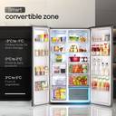 Experience smart cooling with AI that preserves freshness and reduces waste. The convertible zone adapts from -3°C to 5°C for versatile storage. A sleek panel with three preset modes offers effortless temperature control. The inverter compressor and silent fan deliver quiet, energy-efficient performance. With 600L of spacious storage—387L for fresh items and 213L for frozen—you get flexible, organized cooling for every need. Smart, quiet, and made for modern kitchens.