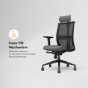 Experience optimal seating comfort with this chair's knee-tilt mechanism. Tilt at three different positions to alleviate pressure on the back of your knees, ensuring that your feet remain flat on the ground. This chair is all about maintaining better posture and reducing discomfort during prolonged work periods.