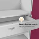 Easy to use, the drawer opens smoothly and locks firmly. It is a convenient space to keep jewelry, documents, personal items, etc. The lock mechanism gives an added layer of security within the wardrobe.