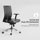 The 360° swivel along with Knee Tilt Synchro mechanism with three different tilt positions, supports healthy body movements and gives great back support.