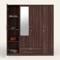 Godrej Interio Ewa with Mirror Engineered Wood 4 Door Wardrobe (Finish Color - Brown, Mirror Included, Knock Down)