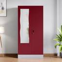Godrej Interio Slimline 2 Door with Locker and Curvilinear Mirror Metal Almirah (Finish Color - Textured Carmine Red, Knock Down)