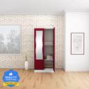 Godrej Interio Slimline 2 Door with 2 shelves and Curvilinear Mirror Metal Almirah (Finish Color - Body: Royal Ivory, Door: Textured Carmine Red, Knock Down)