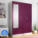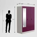 Godrej Interio Slimline 3 Door with Locker, Drawer and Star Design Mirror Metal Almirah (Finish Color - Body: Royal Ivory, Door: Textured Purple, Knock Down)