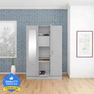 Godrej Interio Slimline 3 Door with Locker and Mirror Metal Almirah (Finish Color - Body: Royal Ivory, Door: Textured Purple, Knock Down)