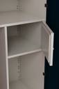 This cupboard is made of steel. This design factor makes it durable and ensures it has a long life.