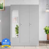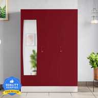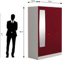 Godrej Interio Slimline 3 Door with Locker, Drawer and Mirror Metal Almirah (Finish Color - Body: Royal Ivory, Door: Textured Carmine Red, Knock Down)
