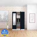Godrej Interio Slimline 3 Door with Locker, Drawer and Star Design Mirror Metal Almirah (Finish Color - Body: Royal Ivory, Door: Pacific Blue, Knock Down)