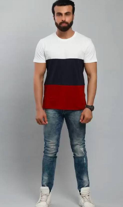 Men Solid Round Neck Cotton Blend White T-Shirt