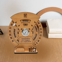 Gojeeva 2 Compartments MDF Desk Calander (Lifetime Infinite Calendar 2023 with Desk Organizer and Clock for Office / Home)