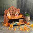 Gojeeva Premium Om Carved Pattern Devghar, Set-Top Box Stand Wooden Mandir Temple(DIY) Wooden Wall Shelf (Number of Shelves - 1, Brown)