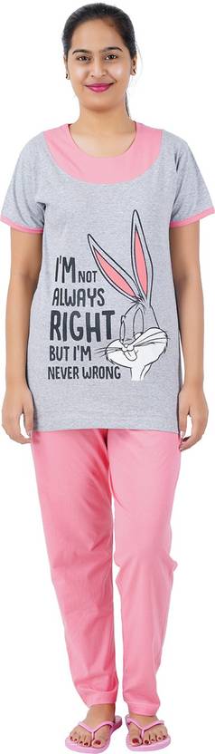 GOKUL FASHION Women Printed, Solid Grey Top & Pyjama Set