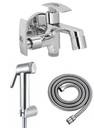 Gold Bell Brass 2 IN 1 Bib Tap With Abs Jqr Health Faucet Chrome Finish Silver ( Set 1 ) 1 Metre SS Tube and Wall Hook Combo ( Pack Of 1 ) Bib Tap Faucet (Wall Mount Installation Type)
