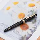 Gold Leaf Wing Sung 629-Fountain Pen, Piston Filling System With Transparent Fence Design Fountain Pen (Ink Color - Black With Gold Trim And Clip)