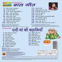 Golden Ball presents 19 Animated Baal Geet DVD.��Presented with spectacular animation.This animated series is sure to keep your child excited��every time��he/she watches this VCD. This VCD includes titles like Lakdi Ki Kathi,Nani Teri Morni,Chanda Mama Dur Ke and many more Songs.+ 18 Animated Dadi Maa Ki Kahniyan , Tales for Kids to enjoy and Learn.