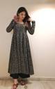 Golden biz Printed Georgette Stitched Flared/A-line Gown (White, Black)