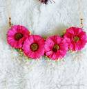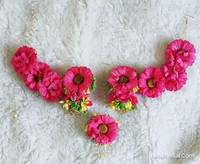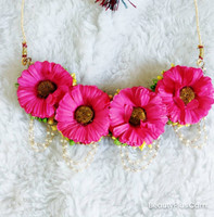 Boasting large, vibrant flowers with broad, slightly ruffled petals, the necklace in this set creates a striking focal point. The textured central disc and delicate hanging beads add an intricate detail, making it ideal for making a bold yet feminine statement. Secured with a tassel closure, it ensures a comfortable and adjustable fit.