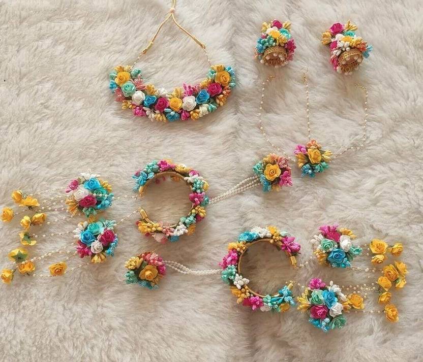 Golden Egg" Flower jewellery set -Vibrant Colour, Weightless, Soft and Easy to handle -Wearable in Wedding / Party / Baby Shower/ Bridal / Haldi / Mehndi /Baby shower Festive Season. Great surprise for weddings. The gotapati jewellery is an elegant representation of a timeless bond of love and affection that connects two people. Elegant and classy, this our hand made jewellery makes a beautiful gift option that is sure to show how much you care. thanks for this product