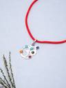 Welcome to our enchanting collection of Silver-Toned Blue & Red Stone-Studded Om-Shaped Pendant with Nylon Cord!