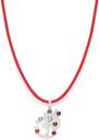 Silver-Toned Blue & Red Stone-Studded Om Shaped Pendant with Nylon Cord