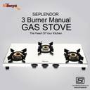 Golden Surya ISI Certified 3 Burner Gas Stove | Heavy Duty Stainless Steel Frame | LPG Use Stainless Steel Manual Gas Stove (3 Burners)